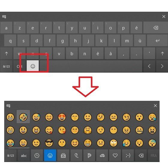 An icon representing a keyboard will appear in the taskbar. Click on it, then on the keyboard key with a smiley face.