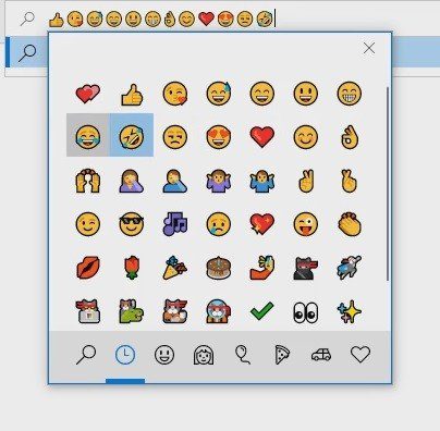 A window appears with a large choice of emoticons, categorized. A search function is also available at the bottom of the window. Click on the drawing that interests you to insert it.